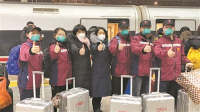 1月26日,接到河北省衛(wèi)健委通知后,河北醫(yī)科大學直屬第一、第二、第三、第四醫(yī)院援助湖北醫(yī)療隊的首批17名隊員迅速集結,當晚8時20分便登上了開往湖北的列車。