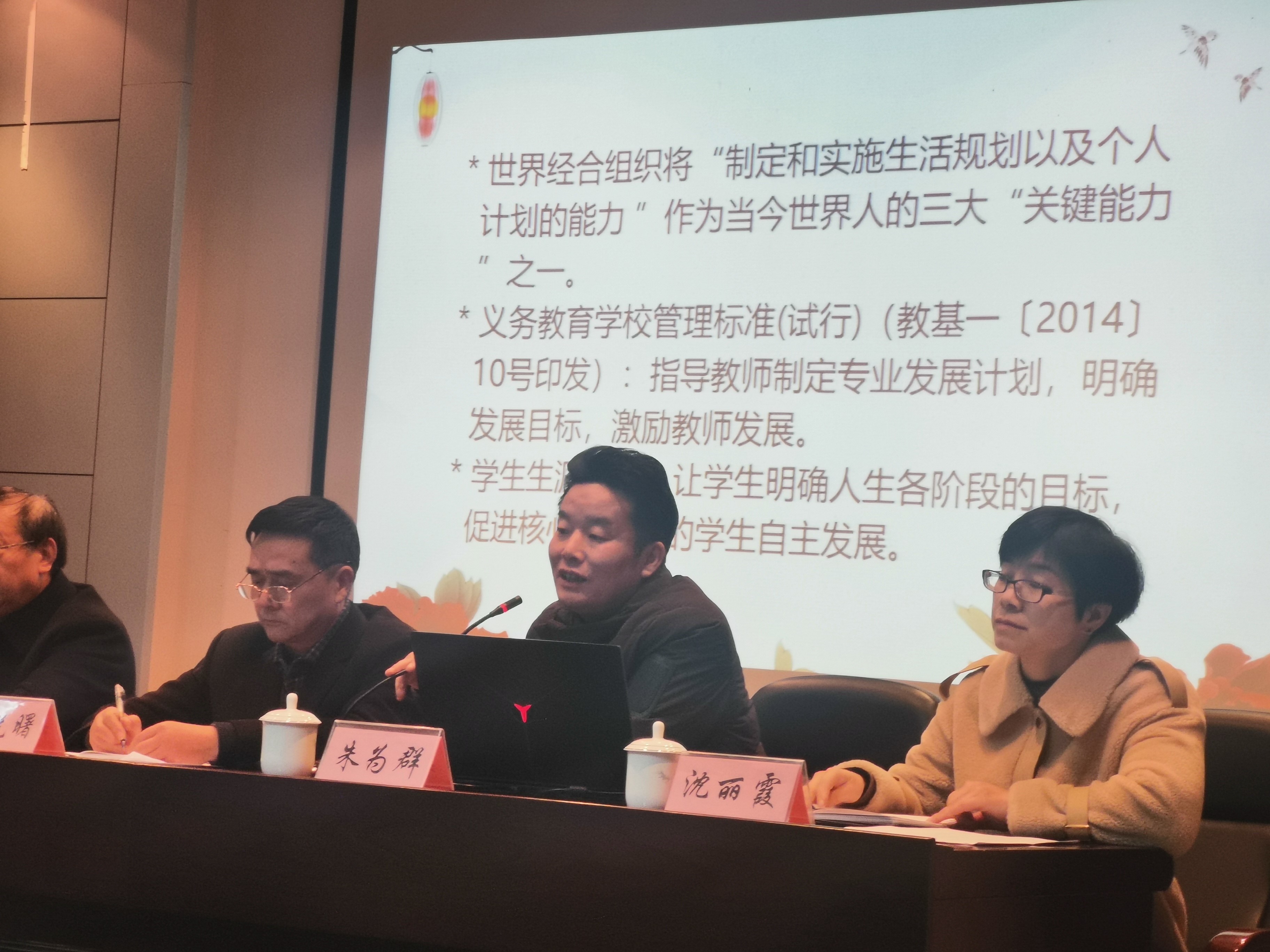 首先,分管教學(xué)的朱為群副校長向全校教師作教師成長發(fā)展規(guī)劃指導(dǎo)報(bào)告。朱校長的講話主要圍繞三個(gè)方面展開:1.教師為何要做專業(yè)成長規(guī)劃;2.教師專業(yè)發(fā)展的主要內(nèi)容;3.教師如何制定專業(yè)成長規(guī)劃。朱校長在報(bào)告中引導(dǎo)教師制定短期規(guī)劃(3年)、中期規(guī)劃(5年)、長期規(guī)劃(10年),在每個(gè)階段中落實(shí)認(rèn)知診斷、確定目標(biāo)、發(fā)展策略、成長評價(jià)四個(gè)環(huán)節(jié),努力從合格型教師轉(zhuǎn)變成為熟練型教師、骨干型教師,甚至專家型教師。