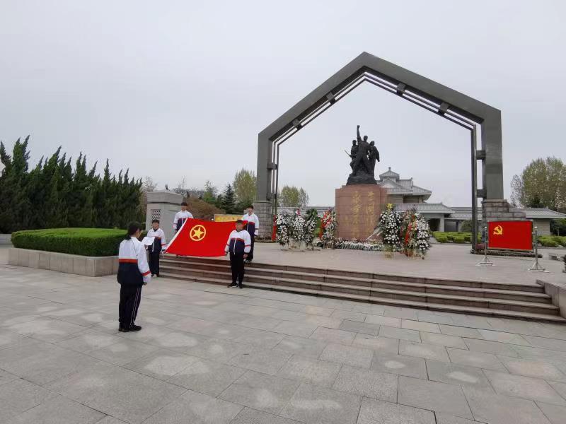在紀(jì)念碑前,團(tuán)員代表敬獻(xiàn)鮮花,默哀致禮。隨后團(tuán)員們?cè)趫F(tuán)員代表王菲同學(xué)的帶領(lǐng)下,面對(duì)團(tuán)旗,重溫入團(tuán)誓詞,深切緬懷先烈們不屈不撓、艱苦奮斗的精神。英雄雕塑目光堅(jiān)定,身姿偉岸,讓團(tuán)員們身臨其境在那段血與火的戰(zhàn)爭(zhēng)中。隨后同學(xué)們參觀了烈士紀(jì)念館,館中一張張圖片、一段段文字、一件件物品都承載著那段可歌可泣的歷史,團(tuán)員們從中尋找著歷史的足跡與滄桑,這些鮮活的史料告訴我們要銘記歷史、緬懷先烈、珍愛(ài)和平、開(kāi)創(chuàng)未來(lái)!
