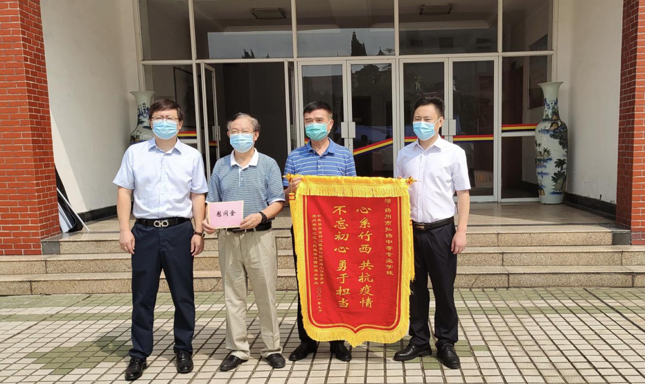 9月10日上午,揚(yáng)州市邗江區(qū)竹西街道黨工委書(shū)記孫德彪帶隊(duì)向弘揚(yáng)學(xué)校送來(lái)一面錦旗,孫書(shū)記充分肯定了弘揚(yáng)學(xué)校在抗擊疫情工作期間的優(yōu)秀表現(xiàn),表達(dá)了對(duì)我校大力支持社區(qū)防疫工作的謝意。竹西街道黨工委副書(shū)記、辦事處主任高偉春參加慰問(wèn)。