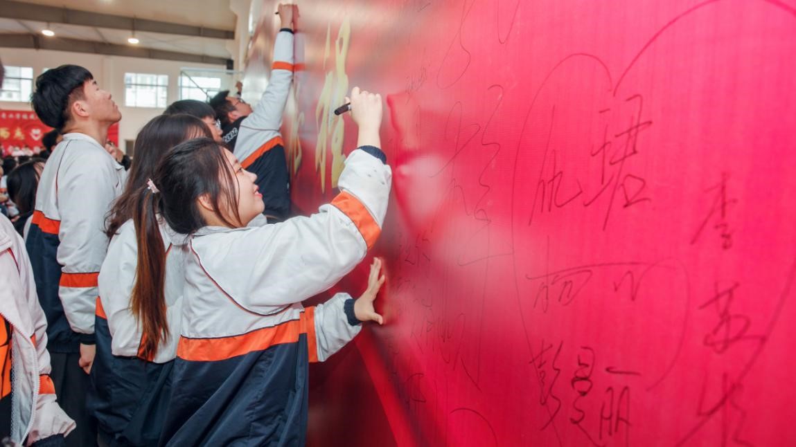 最后,高三全體學(xué)生面向國(guó)旗莊嚴(yán)宣誓,在各班班主任的帶領(lǐng)下,在父母的陪伴下,高三學(xué)子跨過(guò)了“成人門”,并在簽名墻上留下自己的名字,預(yù)示著他們即將踏上高考的征程,也預(yù)示他們的人生翻開了嶄新的篇章。