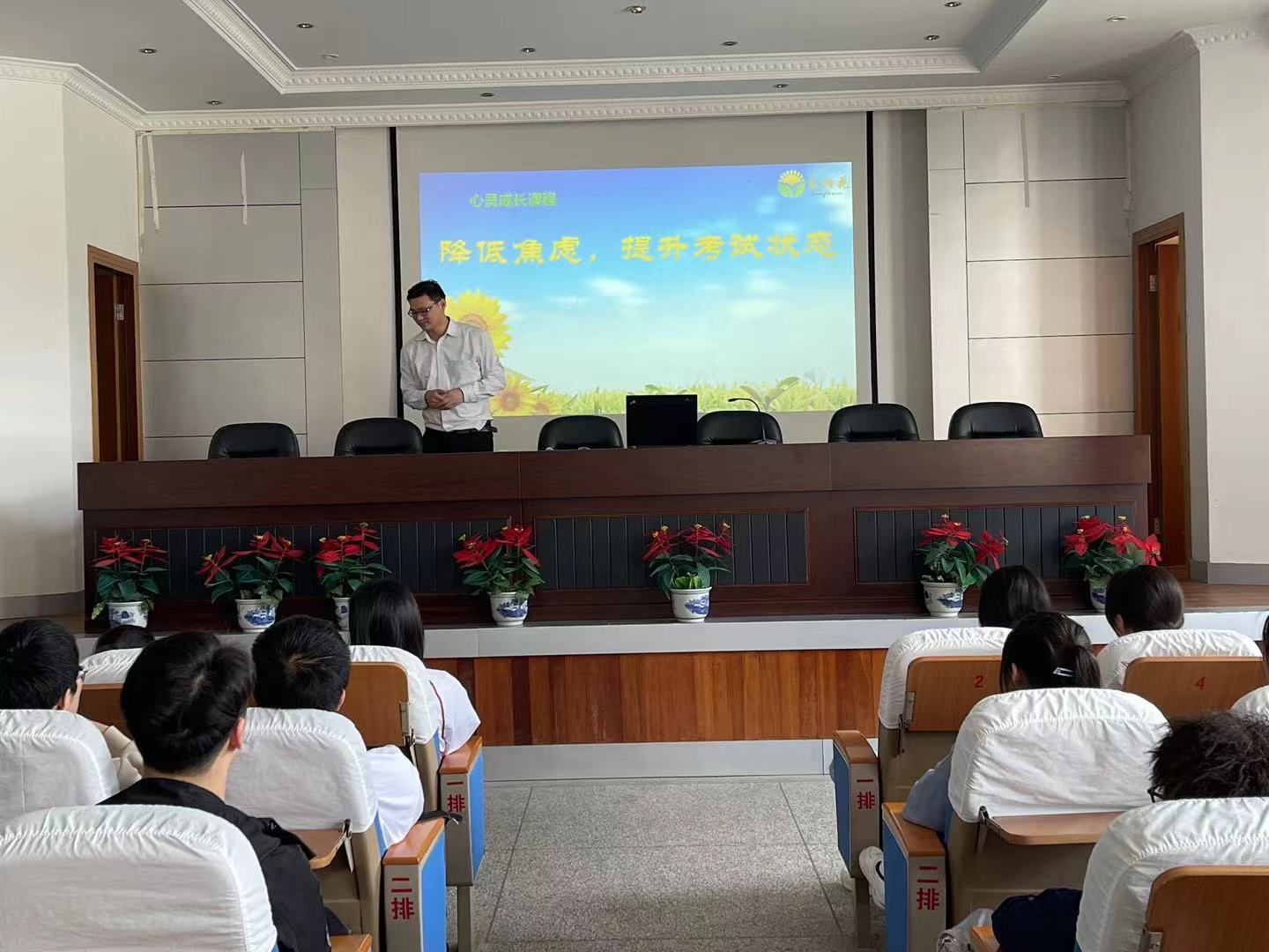 高考即將來臨,為更好讓高三學生以積極的心態(tài)投入復習沖刺,2021年5月24日上午第三節(jié)課在校報告廳,舉辦了揚州市弘揚中等專業(yè)學校高三普高班心理輔導講座,活動主題為“降低焦慮 提升考試狀態(tài)”。此次活動在校學工處陳宏主人帶領(lǐng)下,由心理老師趙建章講解、高三(8)班全體學生及其班主任共同參與。